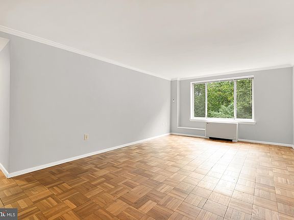 Bright corner unit condo with lots of windows gets great natural light and has excellent views. The condo has been freshly painted and the parquet floors have been refinished. This spacious unit is over 1000 square feet and includes a dedicated dining area, lots of storage and closet space including a walk-in closet in the primary BR and tons of windows including in the kitchen and bathroom. Secure deeded parking and separate storage unit included. The condo fee includes all utilities. Phylmar Plaza is a professionally managed building with two elevators and an on-site resident manager. The building is on a quiet one-way street backing up to Glover Archbold Park. Building roof was replaced in 2023 and solar panels were added which will begin to generate revenue for the association. The new roof includes a renovated roof top deck with breathtaking forest views.