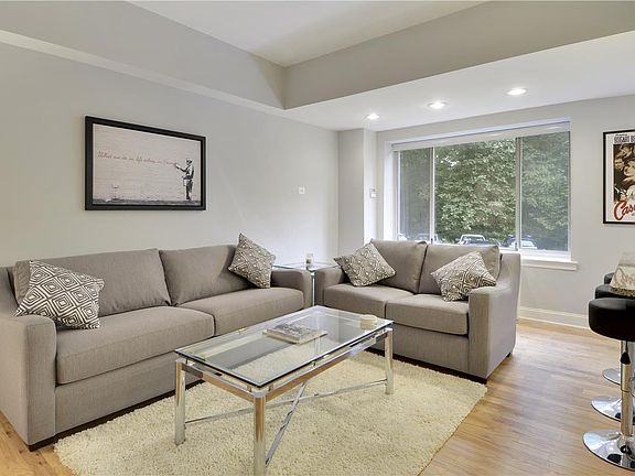 BRIGHT AND SHINY JUST IN TIME FOR THE COLDER WEATHER Perfect layout with open floorplan that is fully customizable- just add a room divider for additional bedroom privacy if wanted! Oversized windows bring in loads of light while giving you a view of the lush woodlands from the top floor. Updated with brand new fixtures and paint in the bath, updated kitchen fixtures and gleaming hardwoods. This unit offers abundant storage space with tons of kitchen cabinets, a large linen and coat closet and an expansive, fully custom, walk-in Elfa closet. Furnished and there is also a pull out sofa! Enjoy the fresh air on the building's scenic roof deck or explore the parkland behind Phylmar Plaza. Rent includes electric, gas, water exterior and interior building and grounds maintenance, building management, master insurance policy, and reserve funds. No pets. Blocks to Glover Park's many retail and restaurant options, as well as Trader Joes, and Wesley Heights, Chef Geoff's, Wagshalls, Walgreens, Foxhall Square and all of Rock Creek Park trails!