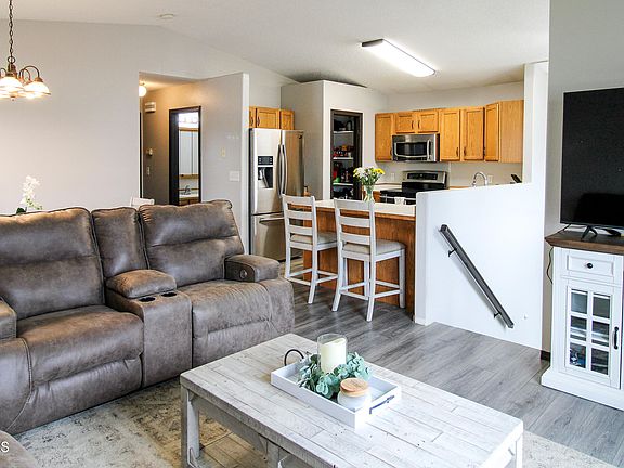 Charming split-level property where affordability meets style! This home offers the perfect blend of comfort and convenience. Boasting three bedrooms, two bathrooms, and a two-stall garage. Step inside and be greeted by an open layout connecting the living, dining, and kitchen areas. You will love how this home is flooded with natural light, creating a warm and welcoming atmosphere. The cozy living area has plenty of space for relaxation and entertainment. The adjacent kitchen offers style and functionality with newer appliances and plenty of cabinet space with a walk-in pantry. One of the highlights of this home is the walk-out deck, extending your living space outdoors and providing the perfect spot for your grill. Step down to the patio and sizable yard, where endless possibilities await for outdoor activities and enjoyment. New fencing will be entirely redone mid-May. All stainless steel appliances were bought new in 2018. The updates ensure that this home is waiting for you to make it your own. Easy to maintain! Quiet neighborhood with low traffic. Don't miss out on the opportunity to make this house your home. Schedule a private tour to experience the perfect blend of comfort, convenience, and affordability in Mandan. Hail Damage has been found so the shingles, gutters and 2 sides will be replaced in a couple weeks. Your next home awaits!
