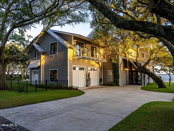 Welcome to 4103 and 4101 Sound Drive, featuring 5 bedrooms and 5 1/2 bath waterfront estate blending old-world influences with refined, high-end details. Set among wind-sculpted live oaks and lush gardens, the home offers sweeping views of Bogue Sound in endless shades of blue. This offering includes 4101 Sound Drive, the adjacent soundfront lot, creating an extraordinary estate along Bogue Sound.