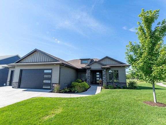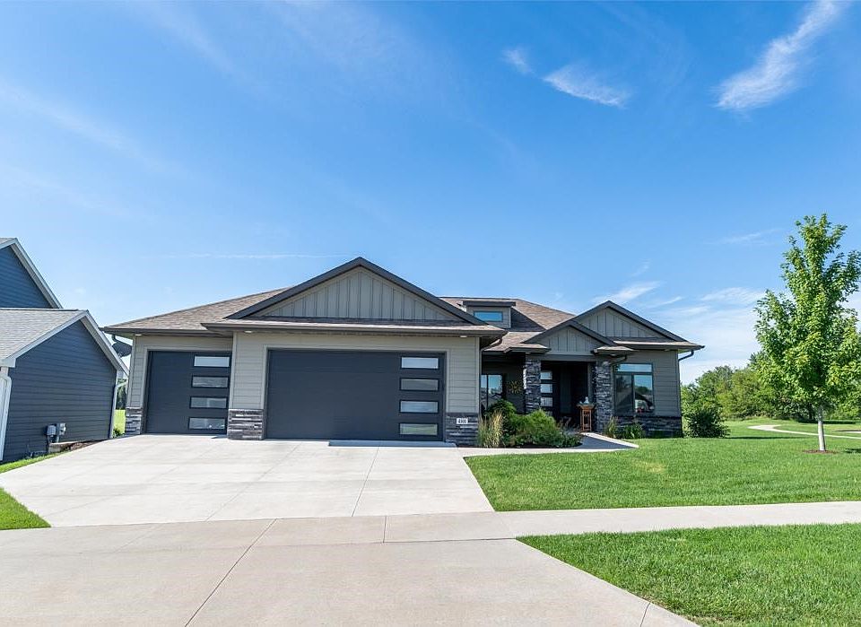 This beautiful home seamlessly marries understated elegance with ease of living. As you first enter you notice the amazing amount of natural light throughout the open main level. A large family with stone fireplace and built-in shelving, melds into the thoughtfully designed kitchen, with quartz counters & breakfast bar, soft-close cabinets, tiled backsplash and stainless steel Monogram appliances. A wall of windows on the rear of the home brings the outside in, but also has electronic shades for privacy. Adjacent the kitchen is a cute dining area that leads to the screened-in porch, overlooking serene greenspace. The main level has 3 bedrooms and 2 baths, including the comfortable primary bedroom with coffered ceiling, en suite bathroom with tiled shower and large, walk-in closet. A modern stainless steel railing guides you to the walkout lower level where you'll find another comfortable living room, 9ft ceilings, a wet bar with full sized refrigerator, built-in wall pockets, 2 more bedrooms and another full bath. Slip outside though the glass sliders to your stamped concrete patio, private gazebo and backyard that is perfect for entertaining. This home is zero-entry from the front door and 3-stall heated garage, has a first floor laundry and drop zone, and central vac. One of a kind home and not to be missed!
