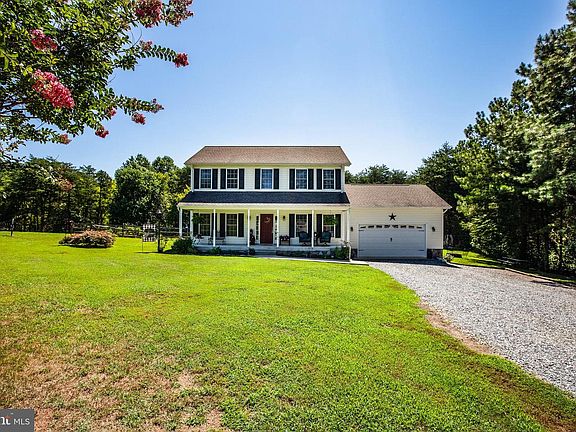 PRISTINE colonial on 2.5+ acres, nicely landscaped, country front porch, NO HOA, GLEAMING hardwood floors, new custom blinds, gourmet kitchen with island, nook area, pantry, newer upgraded appliances, customer backsplash, crown molding thru out the home, DR, FR, boasts large owners suite with enormous private bath overlooking a pond, 2 additional large bedrooms upstairs, mud room/laundry room leading to a 2 car garage. relaxing rear screened in porch, patio area, rear fencing, shed with electric & lean to area, custom fire pit area........TRULY A MUST SEE! Close to Lake Anna marina(s) & room to park on RV, if needed. Ownership on a portion of the pond conveys. Chicken coop fencing & chicken home do not convey.