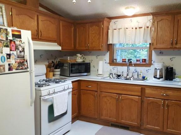 - Features: Sewer/Septic, Lot Description/Irregular, Heating - Fuel Type/Gas, Roof/Asphalt Shingle Roof, Exterior Description/Vinyl Siding, Age/21-30 Years Old, Flooring/Mixed, Lot Size/1/2 - 1 Acre, Water/Well, Garage Count/1 Car Garage, Kitchen Features/Eat-in Kitchen, Heating Type/Forced Air, Lot Description/Wooded, Exterior Living Space/Deck, Body of Water/Lake, Basement/Crawl Space, Exterior/Fire Pit