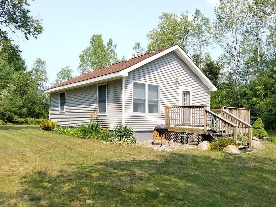 Sitting on 4 private acres bordering state land is this well maintained 2 bedroom, 1 bath cottage that features carpet and vinyl flooring. Cottage has vinyl siding, 2 decks and large fire pit for those special up-north evenings. Mostly furnished, 2 smaller out buildings, county road frontage. You will love the setting! Priced at $79,900.00 MLS# 315435