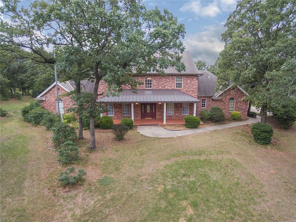 Beautiful Custom Built Home w/40 x 60 Workshop w/Electricity on 5 Wooded Acres w/RV Hook-up Area! 4 Bedrooms (Master Suite Downstairs & 3 Bedrooms Upstairs), 3 1/2 Bathrooms, 2 Car Oversized Garage, Study/2nd Living, 2 Dining, Laundry w/Extensive Cabinetry & Sewing/Craft Desk & SS Sink, Gorgeous Hardwood Floors, Huge Covered Front Porch, Covered Patio, Central Vacuum, Gorgeous Wood-Wrapped & Arched Windows, 2x6 Steel-Framed Home, 3 Heat/Air Units. Office/Study: Amazing Built-in Wood Shelving, Hardwood Flooring. Huge Living Room: Wood-burning Heatilator Fireplace w/Custom Built Arched Mantle, Beautiful Built-in Entertainment Ctr, Wood Floors. Master Suite: French Doors to Bckyd, Dbl Vanity Sinks, Makeup Vanity, Shower, Jetted Tub, Walk-in Closet w/Built-in Ironing Board. Upstairs Bedrooms: Walk-in Closets w/Built-ins, Ceiling Fans, 2nd Bedroom has Private Bathroom & 3rd & 4th Bedrooms share Jack & Jill Bathroom. 1Yr Buyers Warranty. New Charter Oak Elementary 1 1/2 Miles away.