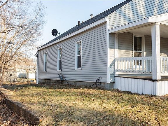 COZY two-bedroom bungalow with NEWER roof, newer maintenance-free vinyl siding, near windows, new furnace, new air conditioner, new water heater, new plumbing lines and updated electrical panel. This home is a corner double lot and features two separate driveways/parking pads. Over sized rear deck offers TONS of fresh air and sunshine. Exterior access to basement has endless possiblitlies as a potential workshop, living quarters or additional storage.