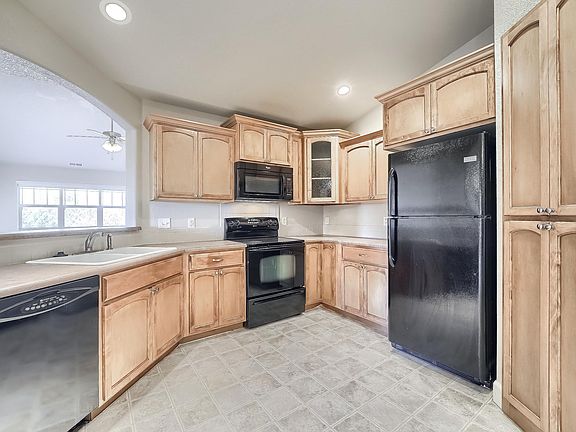 Gorgeous 2 bedroom condo with an attached garage in the desirable Wellington Village Condo community! This condo features an open floor plan with a large living room complete with a ceiling fan, fireplace to keep warm on those cold winter nights, built in shelves & is open to the dining room & kitchen. The kitchen features modern black appliances, light wood cabinets & plenty of counter space perfect for entertaining. The spacious dining room is a great gathering place & includes a modern chandelier. The primary bedroom won't disappoint with plenty of closet space, an en suite bath & ceiling fan. Large secondary bedroom can double as an office with french doors. Step out on your balcony & enjoy the fresh air. Community amenities include a sparkling pool. Close proximity to West Side 9 Hole Disc Golf, Meadows Open Space, Bee Lake Reservoir, Dirty North Archery. You're just a short drive to Sparge Brewing and easy freeway access to get you to your favorite destinations.