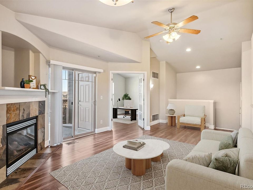 Welcome to your new home! This charming 2-bedroom, 2-bathroom condo in Wellington is move-in ready, with new carpeting on the stairs and a warm, inviting ambiance. The open-concept design flows seamlessly from the kitchen to the living room, complete with built-ins and a gas fireplace. Step onto the large balcony from the living room to enjoy the serene surroundings. The spacious primary suite features an attached full bathroom, while the second bathroom offers a convenient ¾ layout. With an attached 1-car garage and a large entryway, this home is as practical as it is beautiful. The HOA offers exceptional amenities, including a clubhouse, pool, parks, a volleyball court, and plenty of guest parking. This is the perfect blend of comfort and community! Come view this property today by reaching out to your buyer's agent or contacting the listing agent for access and more details!