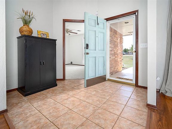 Have you been looking for a great home on an acre? This 4 bedroom (or 3 + office) is perfect for you. As you pull up to the home you will be welcomed by plenty of space if gardening is what you love or just enjoy a peaceful morning on the porch. The interior has an open layout, fresh paint and new carpet in the bedrooms . You will love cooking in the open kitchen with tons of natural light, plenty of cabinets and beautiful granite countertops. A spacious primary bedroom and bathroom with double vanities, updated tub and shower and huge walk in closet. The opposite end of the home includes 3 bedrooms and remodeled guest bath. Relax on the covered patio while overlooking the enormous fenced yard, out building and in ground storm shelter and has water softener, water well, and aerobic system. Deer Creek schools. Just come take a look for yourself!!