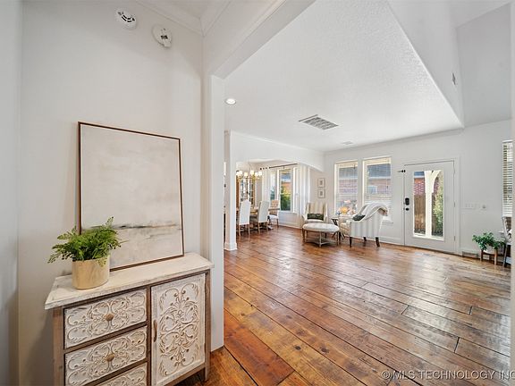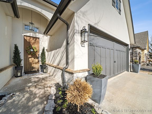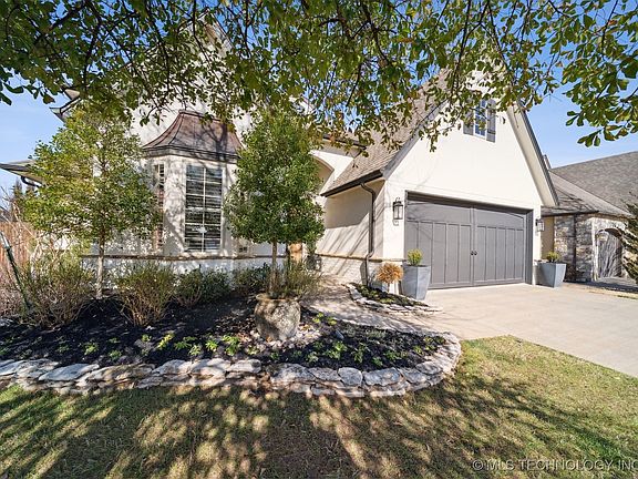 Welcome to this exceptional 4-bedroom, 3.5-bathroom home in the desirable Wind River community, located within the top-rated Jenks School District. This beautifully updated home features a 3-car tandem garage, a spacious and functional layout, and high-end finishes throughout. The main level offers a luxurious master suite and an additional bedroom with an attached guest suite. The upstairs includes two bedrooms with a Jack and Jill bathroom, a huge game room, and abundant storage. Recent updates feature exterior paint in 2021, and a beautifully remodeled chef's kitchen in 2022 with new appliances and quartz countertops, check out the redesigned pantry with quartz counters. The master bathroom, powder room, and guest bathroom were remodeled in 2022. Don't forget to check out the remodeled laundry room, it's in a league of its own! The professionally landscaped yard features decorative outdoor lighting, a charming front fountain, and an inviting outdoor kitchen area with a gas fire pit. A large covered patio with an outdoor TV creates the perfect space for entertaining. With stunning hardwood floors, all-new lighting fixtures, and ceiling fans, this home is truly move-in ready. Don’t miss this incredible opportunity!