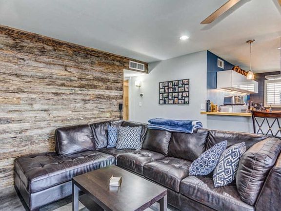 Stunning home sweet home. Custom color palette exposed brick walls, and concrete floors throughout home. Kitchen is complete with a plethora of cabinets, recessed lighting, butcher's block counters with ample space, and stainless steel appliances. Master suite has picture window and ceiling fan. Upgraded 3/4 bathroom with single sink vanity and washer/dryer. Plantation shutters throughout.New HVAC. Home is close to community pool. Walking distance to fantastic dining, and more!