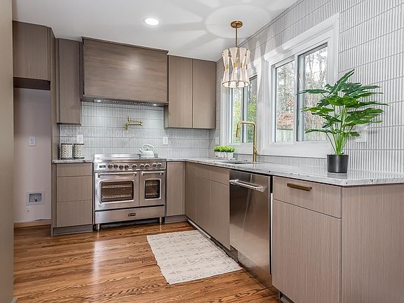 Charming mid-century modern ranch home on large 0.69 acre lot in highly desirable Raleigh location! Rare 4 bed/2.5 bath with beautiful renovations and glowing hardwoods throughout. Luxury galley kitchen features Verona Italian double oven and wine cooler. Relax by the wood burning fireplace in the living room or enjoy a book in the den with built in bookshelves. Dreamy master bedroom with ensuite sitting room and large bath with walk-in rain shower, freestanding tub, and walk-in closet. Enjoy coffee or wine on your huge patio in the private backyard! Convenient mudroom with laundry room and powder room right off the 2 car garage with storage. Quiet neighborhood with no through traffic. Within minutes to Crabtree Valley Mall, Laurel Hills Park, UNC REX Hospital, and PNC Arena.