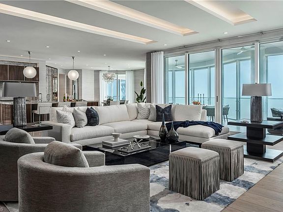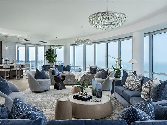 Where coastal elegance meets timeless sophistication, Penthouse #3 at The Regent offers a truly rare opportunity to own one of Naples’ most prestigious sky residences. Encompassing 12,135 square feet of thoughtfully designed living space, this exquisite penthouse is gracefully perched above the turquoise waters of the Gulf of Mexico, with unrivaled panoramic views stretching endlessly along the coastline. Bathed in natural light and kissed by Gulf breezes, the residence seamlessly blends classic refinement with relaxed seaside charm. Expansive glass walls open to generous terraces, inviting the outdoors in and capturing the colors and calm of the sea from sunrise to sunset. The home features five spacious bedroom suites, each with a private bath, along with two additional powder rooms, a richly appointed study, a comfortable media room, and a tranquil cabana room that offers a quiet escape with direct terrace access. A distinctive and sought-after highlight, the private guest cottage suite provides a serene haven of its own—complete with a full guest kitchen, covered terrace, and private elevator access—perfect for extended stays or independent living quarters. From the elegant formal spaces to the chef’s kitchen and discreet butler’s pantry, every detail has been curated to enhance livability while maintaining a sense of effortless luxury. Rarely found in high-rise residences, the climate-controlled private 3-car garage offers both convenience and security. Set within The Regent at Park Shore, a landmark of coastal luxury with white-glove service, gated privacy, and direct beach access, Penthouse #3 offers not only a residence, but a lifestyle—where sophistication flows as naturally as the tides, and every day is framed by the beauty of the sea.