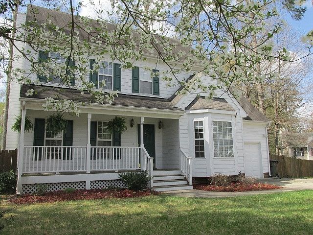 BETTER THAN NEW!! Rocking chair front porch welcomes you with great curb appeal. White kitchen cabinets, NEW countertops, eat in kitchen, crown moldings and bay window in dining room. 4 bedrooms, 2.5 baths with walk in closets, ceiling fans, new paint and carpet upstairs. Walk In 3rd flr. attic gives you tons of storage. Established yard/trees, flowers with back deck, corner lot, cul de sac and fenced yard. Shows great! Wonderfully maintained home!