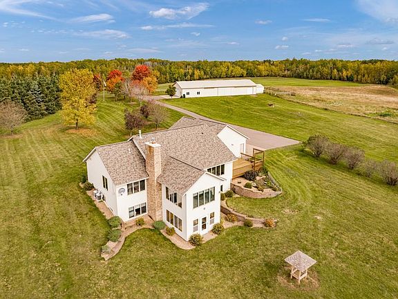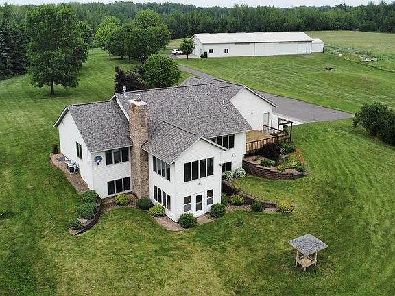 ONE OF A KIND Beautiful Private property on 117 ac of exceptional land near Moose Lake. Well kept w/lots of natural light 3 Bdrm 4 Bath rambler w/open floor plan & walk out basement. Att. heated 3 car gar. Main lvl offers a very functional spacious kitchen/din area w/beautiful view of the pond & wildlife. Liv rm has gas FP & connects to a gorgeous sunroom. Large main floor BD w/walk in closet & full Ba & the view of the pond. House has walkout full bsmt w/separate entrance fm the att.gar. There is a 2nd kitchen, large liv rm w/wood FP, 3 season porch, two more bdrms.. Brand new roof on the house! You'd love 40x110 pole building w/30x40 heated/cooled shop w/1/2 Ba. Large cold storage area. The back has 4 quality-built horse stalls & a tack rm/office. 20x20 animal shelter is on the back w/Richie water. There is a large shooting range/trap range! Land has miles of wide maintained trails & it connects to Soo Line trail. Schedule your private tour! There is a lot to see here!