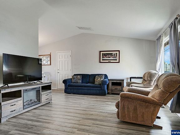 MOTIVATED SELLER! Move in ready! Well kept updated home with newer LVP flooring, brand new AC unit, new hot water heater, granite countertops, stainless steel appliances, including refrigerator & vaulted living room! Great location close to shopping & I-5. Spacious primary bedroom with his & her closets. Main bathroom has shower/tub combo. Fully fenced backyard with a patio, a pear tree and garden beds. Completely finished double car garage & RV parking. A must see!
