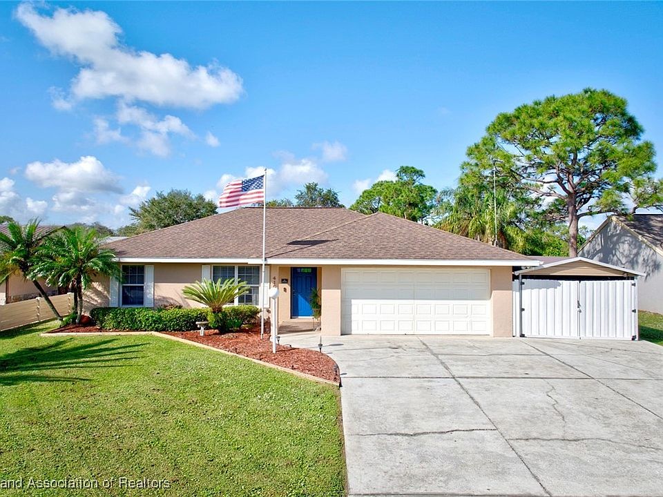 Discover this meticulously kept 3-bedroom, 2-bath home in the desirable Harder Hall area! Featuring an open floor plan with vaulted ceilings, this home feels spacious and inviting. The large master bedroom includes a private en suite, providing a comfortable retreat. Step outside to your own oasis—a relaxing screened lanai overlooking a fenced backyard, perfect for outdoor enjoyment and living the Florida lifestyle. Additional highlights include two utility sheds for extra storage, a metal carport, fire pit, and ample space for everyone and everything. Don’t miss out on this move-in ready gem!