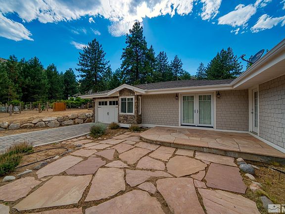 Stunning location in the prestigious Lakeview neighborhood. Explore the opportunities this lovely home has to offer. The 1.23 acre parcel is well planned and manicured with multiple patios, walkways and RV parking. The main portion of the house is one story with a spacious living room with serene views, large dining area and open kitchen, and the extra large laundry room off the kitchen could also be used as a butler’s pantry. Above the garage is 1,400 SF of open space, with wet bar, bathroom and balcony., Explore the opportunities of all this lovely home has to offer. The 1.23 acre parcel is well planned with access to the property from 3 locations, and there is plenty of room for all your toys. The property offers an oversized, 840 SF attached 2 car garage with an electric hydronic in-floor heating system, and a separate one car garage on the other end of the house located near the detached greenhouse and garden area. The circular driveway is handy for negotiating plenty of vehicles, and there are two additional parking pads. The entire property was thoughtfully designed and originally landscaped and is a gardener's dream. From the front door, you are greeted with an elegant and warm, extra large living room with a cozy wood burning fireplace and grand brick hearth. Gorgeous French doors open to a large covered deck, framing the spectacular view of the backyard that the seller lovingly created. The formal dining area not only overlooks the property but also provides access to an outside patio, ideal for barbecues and entertaining. Mountain and valley views captivate and beckon you to explore the expansive property. The kitchen has plenty of room for many chefs, and the walk-in pantry has plenty of storage. The gas cook-top range located on the kitchen island provides plenty of room for creating culinary masterpieces. Doing dishes is never a chore while admiring the view of the front side of the property. The tremendous laundry room off of the kitchen has ample storage, countertops and even a built-in ironing board. This multi-purpose room could also easily be used as a butler's pantry. The half bath is also a welcomed addition as it is also next to the main garage. Over the garage is one of the best features of the house with a blank canvas of over 1,400 SF of open area with beautiful hardwood flooring. Originally used as an artist’s studio and exercise room, this area can become whatever you want to create. A full bathroom with steam shower, wet bar and balcony overlooking the yard are bonuses to the second story. All bedrooms are on the main floor, and the primary bedroom offers a fireplace, walk-in closet and access to the backyard. The primary bathroom has a separate shower and a soaking tub with a serene view of the property. The location of this quiet neighborhood couldn’t be better. The property is nestled around rolling hills and is a quick 3 mile drive to Silver Oak Golf Course, Western Nevada College, Carson Tahoe Medical Center and stores. Hop onto I-580 and Reno is less than 20 minutes away. Welcome home to this beautiful gem in the desirable community of Lakeview which was recently awarded the 2024 Firewise USA Program Certificate of Recognition.