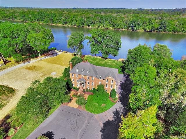 This is the first offering of an exquisite custom built home on 2 acres right on the James River in Chesterfield County! Refined interiors reveal an elegant dining room, formal living room with a fireplace and a light-filled great room with sweeping water sight lines. French doors foster an effortless indoor-outdoor flow to the deck and covered lower patio area. An exceptional chef's kitchen features stainless appliances, an eat-in island and charming breakfast area with windows overlooking the James River. The entire basement has been converted into a collector's dream with space for 6+ cars, a heat and AC source (basement space is not included in finished sqft count), a hydraulic car lift and built-in air compressor. Other notable features include first and second-floor master suites with beautiful vanity space and expansive walk-in closets, your own private gym, 10ft ceilings on the main level, 12ft tray ceiling in upstairs master, humidified wine cellar off the dining room, built-in speakers, hardwired generator, enormous walk-up attic and of course your very own private dock on the James River. Call and schedule your showing today!