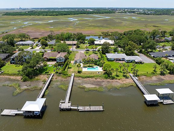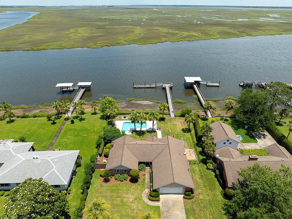 Check out this Spectacular Riverside Ranch!! Located on the Back River, this 3 bedroom/ 3 bath ranch style home offers so much more then just Marsh Views. Enjoy cool breezes from the pool or pull up to the private dock with deep water access. This property boasts marsh views from multiple living spaces, a large fireplace and wet bar! Spilt bedroom styles with guest bedrooms located on Right side of home. Private Large Primary Suite with his and her walk in closets, private primary Bath and built-in bookcase. Dining and Kitchen are located central to the house, built in cabinetry storage and breakfast area. Did I mention the backyard? Enjoy the coast life from your fully-fenced backyard with pool and deep-water dock. Well maintained, Easy to Show, Call Roland Daniel to set up your showing today!