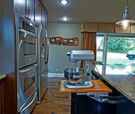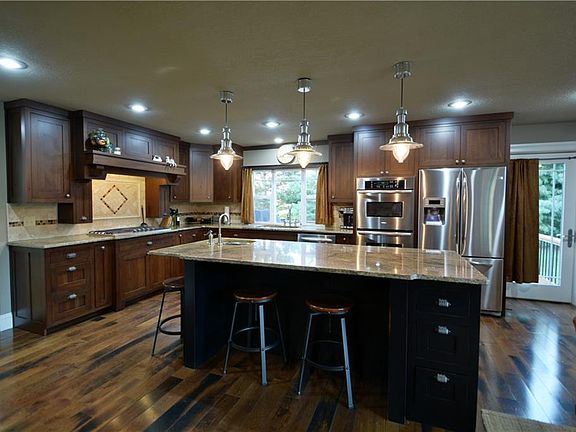 Perfectly situated on 2.39 acres, this home defines craftsman charm. Open kitchen, sitting and eating area with a grand island, picture windows, exotic granite, ss appliances- double ovens and gas cook top, custom cherry wood cabinetry. Step down into a perfect living space with wood burn fp and wet bar. Covered 34X24 outdoor living space w/rock wood burn fp, serving buffet, tongue and groove ceiling, stained/stamped concrete, plenty of seating. 24X36 metal shop, 9X36 and 12X36 lean to sheds, 12X20 deck.