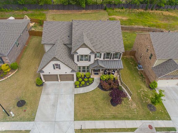Located in THE Buford City School District this immaculate Kendrick floor-plan is move-in ready and upgraded to the 9's with an extremely hard to find huge flat backyard. The amazing home offers; 5 bedroom, 4 bath home, an entertaining loft wired for surround sound and theater, 3 sides brick, open layout with study & formal dining rm with coffered ceiling, gourmet kitchen featuring 42" white glazed cabinets, butlers pantry, granite counter tops, subway back-splash, double ovens, stainless steel appliances & large island. The huge kitchen opens to breakfast area, spacious family room with stacked stone fireplace.  Hardwoods, throughout main living areas, wrought iron spindles & hardwood stairs. There's a full bath and bedroom perfect for guests or a home office on the main. The upper level has a perfectly sized master suite with a beautiful bath with a large walk in closet, tile floors, upgraded shower, and white glazed cabinets. The backyard is massive and flat which is perfect playing, swing set, trampoline or a pool. The extended covered patio includes a gas fireplace with stone surround.  This is an active swim tennis community.  The home is wonderfully located just mins from 985 and the Mall of GA.