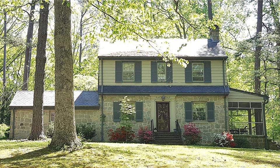 Situated on a serene one acre lot in Stratford Hills and just minutes away from the James River, this classic two story stone cottage boasts of charm and craftsmanship. You will appreciate the hardwood floors, arched doorways and screened porch. A renovated eat-in kitchen provides modern conveniences and upgrades like granite counters, glass front cabinetry, large pantry, and gas range. An unfinished basement and a detached two car garage with 300 sq ft of conditioned space above add additional flexibility and utility for you to enjoy this property! Priced below tax assessment, don't miss this opportunity to make this stunning house your dream home!