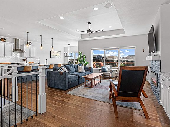 This 6-bedroom, 3.5-bathroom ranch home features a zero-step entry to the main floor through the heated 3-car garage. The main level includes a spacious primary suite on one side and two additional bedrooms with a full bathroom on the other. These areas are separated by the open-concept great room, dining area, and luxuriously appointed kitchen. A wall of windows brings in abundant natural light and offers expansive views. Downstairs, you’ll find a walk-out basement with a gym, a large living space with a wet bar, and three additional bedrooms along with a full bathroom. This home boasts numerous upgrades, including real wood floors throughout the living room and kitchen, quartz countertops, custom kitchen cabinets with under-cabinet lighting, white trim, and LP Smart Siding. The oversized 3-car garage includes an extended third stall—perfect for a shop, work area, or even a golf simulator. A large raised deck off the dining area provides the ideal outdoor space to enjoy peaceful views of the expansive green space behind the home. With motivated sellers, this home is a must-see. Schedule your showing today!