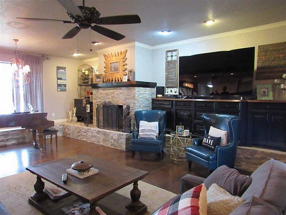 This beautiful custom built, newly remodeled home offers three oversized bedrooms with walk-in closets guest bedroom have Jack and Jill three quarter bathroom and one half bathroom for main living area. All flooring has been replaced with gorgeous engineered hardwood and travertine tile. The master bathroom has double sinks, a beautiful tile shower and a large garden tub. The property sits on almost 2 acres with a great work shop and pens. The backyard is fenced in and separated from the pasture and shop.