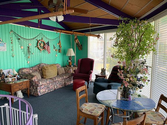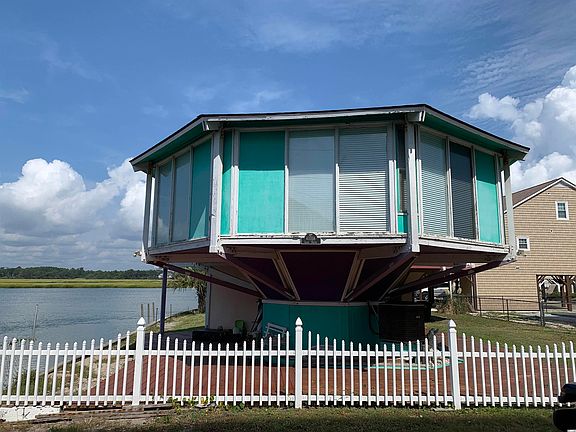 Spectacular views of the inlet creek and coastal preserve highlight this nautical themed home. This uniquely designed home will delight with sunset views from the deck overlooking the popular fishing inlet, 2 bedrooms, 2 full baths, kitchen, and living room with panoramic windows overlooking the creek. There is a storage/laundry room off the downstairs foyer.
