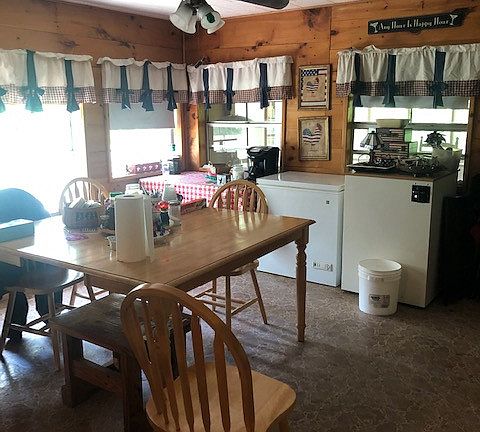 Washer/dryer, deep freezer, wood walls, 3 window units, propane heater, sauna, electric heatersSOLD "AS IS"
