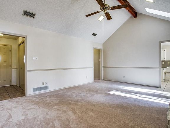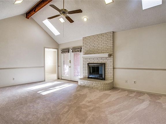 Stunning curb appeal and set at the end of a quiet cul-de-sac, this home is ready for you to move right in! New carpet just installed. Open layout with nice sized rooms. Large den with a cozy fireplace, skylights and French doors to enjoy the backyard view. Split master bedroom has vaulted ceilings, great windows and a wonderful spa style shower. Sunny breakfast room with tile floors. The kitchen has nice storage and all updated appliances. Extra storage in utility room. The secondary bedrooms are nice sized. One of the bedrooms has a vaulted ceiling and laminate floors, perfect for a study. Nice sized backyard with trees and a new deck! This will be a favorite spot to relax or for fun and play.
