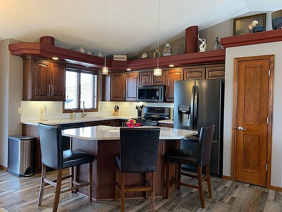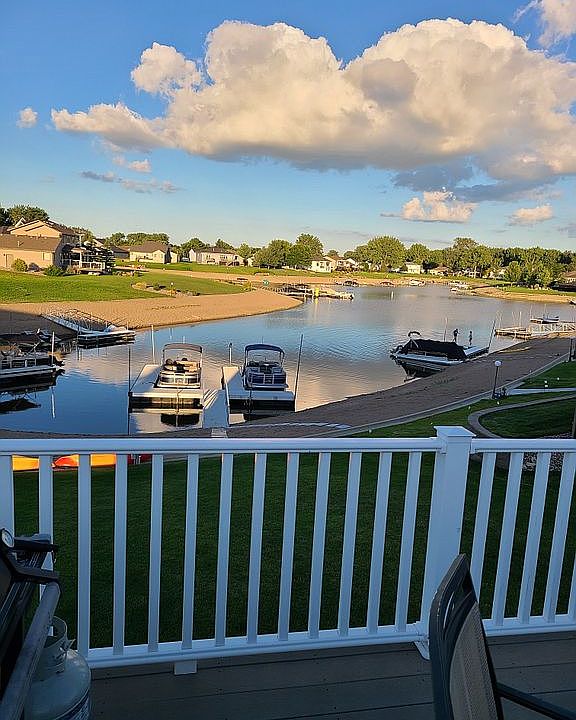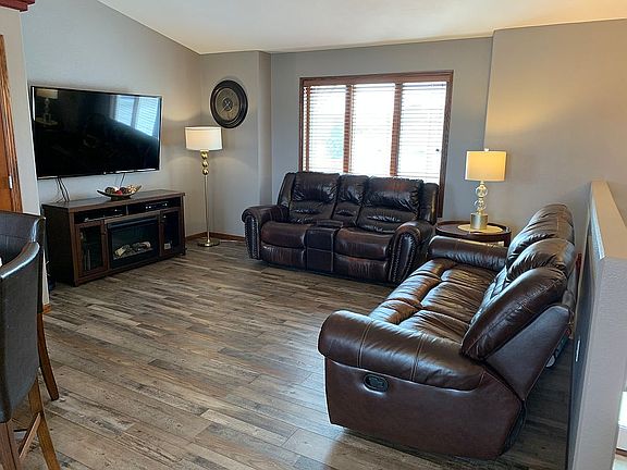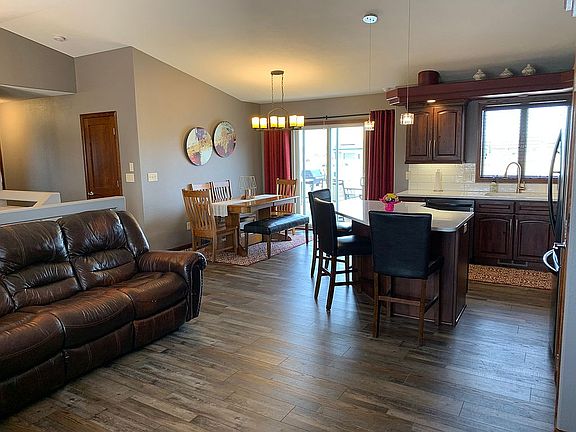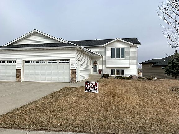 Perfect water access! * 4102 Bayport Place SE, Mandan Beautiful split-level home located in the Lakewood 6th Addition, with backyard water access! This home has a fully finished open floor plan with 2372 square feet. It offers 4 bedrooms and 3 bathrooms. As you walk in you will notice fresh new paint throughout the house and all new flooring on the upper level. Included on the upper level is the master suite overlooking the water, master bath, and walk-in closet. Two additional walk-in closets are located in the guest bedrooms. The kitchen has updated stainless steel appliances, counter tops, back splash and custom cabinetry. It is set up perfectly for cooking and entertaining with the center island, and easy walkout patio door to the large maintenance free deck. The lower level has daylight windows with another lower-level walkout patio. You will immediately be drawn to a beautiful, landscaped yard with sprinkler system, which leads you down to the sand beach where you can watch the kids play while you fish from the included large dock. The attached 3 stall garage is completely finished and heated. Home includes a security system setup.