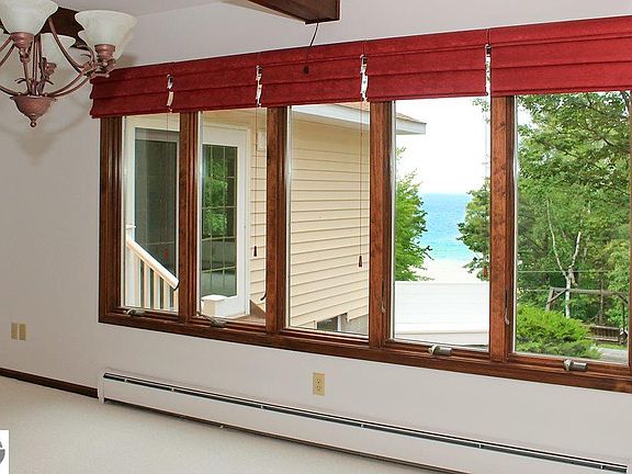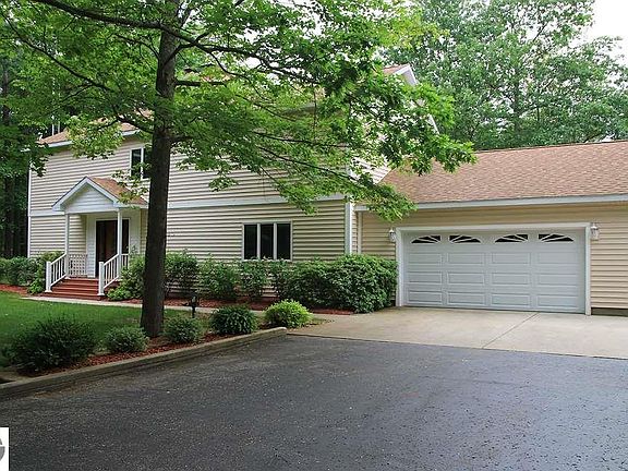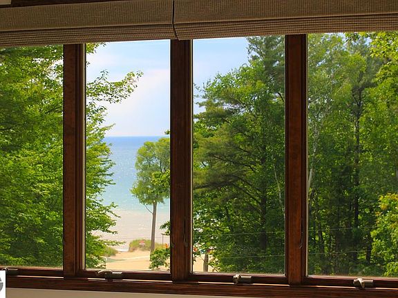 OVERLOOKING LAKE MICHIGAN!! Views of the water from nearly every room of this large 3 bedroom/ 3 bath home located in the Lakeland Association south of Manistee, Michigan. Association owned & shared Lake Michigan waterfront is accessed via a set of steps right in the backyard! The home features a remodeled kitchen that is a chef's delight w/ many upgrades - granite counters, Sub Zero fridge, Jenn Air stove. Open floor plan from kitchen to dining room & living room with cathedral ceilings. Formal living room with fireplace and MORE VIEWS! Sliders to deck from both living spaces and from the HOT TUB room! The sliders lead to expansive low maintenance Trex composite decking across the entire back of the home. Upstairs you'll find three bedrooms, including a master suite plus den/office with built-ins and brick area where a fireplace can be added. All 3 bathrooms have also been updated! Hot tub room, workshop, spacious breezeway, A/C, highspeed internet, natural gas, cable, sprinkler system, central vacuum...the list doesn't end! In addition to the shared beach access, the Lakeland Association offers members access to 135 acres of woods, a clubhouse, storage building, basketball hoops, playground, grills, a tennis court and trails for walking your dog!
