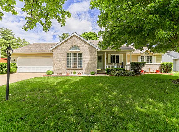 Do not miss your chance to fall in love with this sprawling ranch style home that is perfectly situated in the GlenShire Neighborhood with great curb appeal that provides a charming front porch and well-maintained landscape. As you enter this sweet home, you are embraced with an open and airy feel with the cathedral ceilings, plush carpet, and ample space throughout giving the home a relaxed and comfortable atmosphere. The open concept living and dining room lead you into the large and highly functional laundry room that features cabinets and countertop space giving the home a high level of organization and ease. As you continue on, you are met with French doors that leads you into an uplifting and sunny 4-seasons sun room that can be enjoyed all year long with several windows throughout and an entrance to the peaceful back deck that overlooks the nicely landscaped backyard. The generously sized kitchen includes a convenient center island with lots of cabinets and counter space which is adjacent to a wonderfully placed family room with additional cathedral ceilings and a cozy gas log fireplace. This home also features 3 good size bedrooms including the large full en suite master that offers two closets, one being a walk in, and full bath with a double vanity. To finish this lovely home is the 2nd full bath and oversized two car garage with built in storage. Peace of mind maintenance includes some new paint throughout, new sump pump in 2019, Anderson windows throughout, new flooring in both bathrooms, roof replacement in 2010, new AC and furnace in 2010, and new tension spring on garage door opener in 2019. This home is well cared for and waiting for you to call it your own!