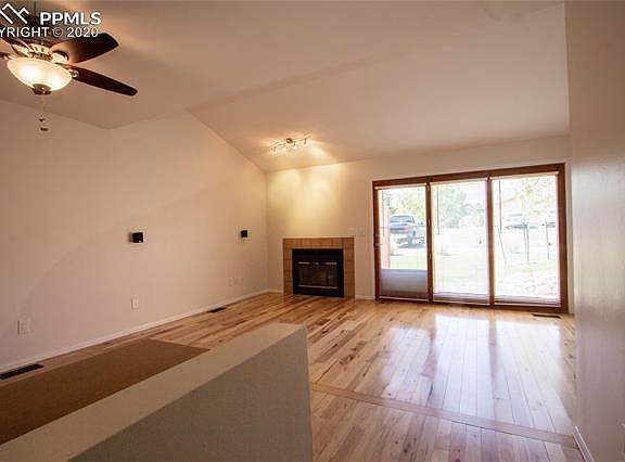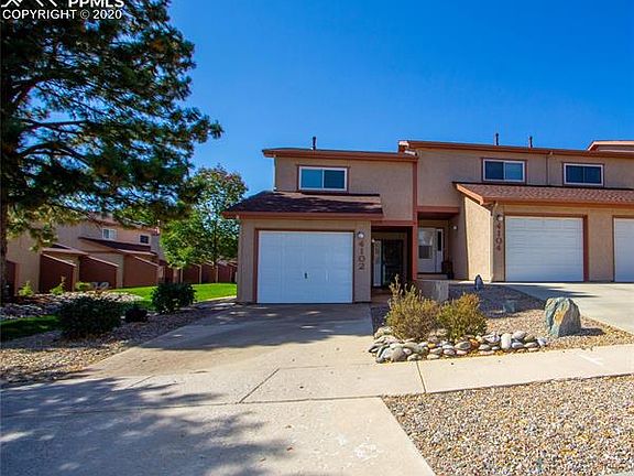 Completely updated west side condo. Bright and open end unit with vaulted ceilings, wood burning fireplace, and a gourmet kitchen. This home features brand new carpet, hickory and maple hardwood. Unit has been freshly painted, and has a recently installed skylight for fantastic natural light. Many updates have been done, including highly efficient custom kitchen with granite countertops and designer backsplash. Kitchen includes upgraded gas stove, slide out pantry drawers and sliding pan and lid organizers, and a full size sink with customized inserts. All appliances are included. Granite countertops throughout the home, including both bathrooms. The living room is wired for surround sound, and a multifunctional Bluetooth light with speaker is included in the upstairs bathroom. All new Decora electrical switches and upgraded plumbing fixtures, and upgraded tile in bathrooms. Pocket doors added for additional living space, and 6 panel doors have been installed throughout, with easy access handles. New water heater and roof installed in 2019, new central air conditioner in 2017, and a new furnace in 2009. Laundry is located upstairs in unit, and includes washer and dryer. Fantastic mountain views including Pikes Peak. Property is located in the desirable Holland Park neighborhood, within walking distance to parks, schools, and trails. Pet friendly property with locked mailboxes and secure package delivery. Easy access to dining and shopping, Garden of the Gods, and the I25, for a fantastic commute to both USAFA and Fort Carson. Centrally located within Colorado Springs making a great drive to anywhere in town.