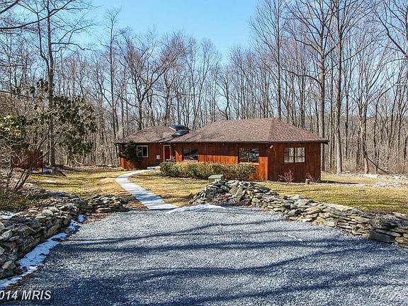 Peaceful retreat just 10 minutes from Cunningham State Park. 6.89 private wooded lot. Tigerwood floors & open floor plan with lots of natural lights. Renovated kitchen w granite countertops, SS appliances & breakfast bar. Open family room & dining area with stone wall w new pellet stove. Stunning vaulted wood ceilings & wood beams throughout entire home. 1 hour to DC and Baltimore.