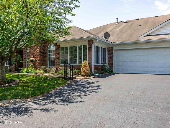 Very spacious patio-garden home with 2,025 square feet. As you walk in the front door there is a large living room with a gas fireplace, formal dinning room, and an eat-in kitchen with plenty of cabinets. There is a lovely sun room off the kitchen that has a separate heating and a/c. Main bedroom with a full bath and walk-in closet and another nice sized bedroom connected to the living room with a walk in closet. At the left of the entrance is an extra den room for an office or play area. Plenty of storage space throughout. A spacious 2 car garage that has extra room for gardening supplies or an art area. Washer/dryer room is in between the kitchen and garage entrance. Home is near Gene Synder and the Parklands. New roof being installed in the next 2 weeks. Newly installed Solar Attic Fan