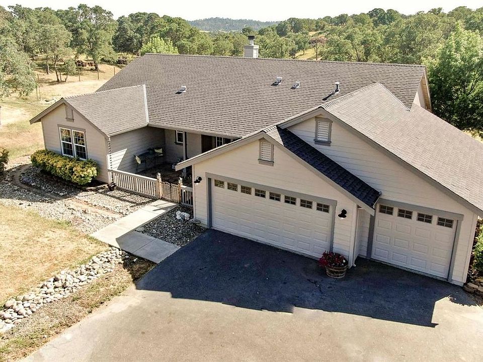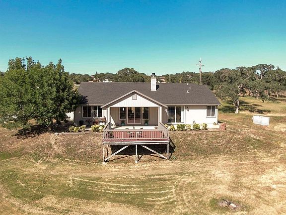Your country dream-home awaits! Spacious & bright home w/ open-concept floorplan, vaulted ceilings, cozy fireplace, brand-new paint inside & out, and 3-car, extra-deep garage perfect for boat, cars, & toys. Large kitchen w/upgraded textured-tile counters w/ colonial bullnose, huge island with breakfast bar, & newly re-finished gray & white cabinets! Low profile, under-cabinet lighting & black GE profile appliances. Master suite w/slider out to rear patio! Bring all your animals! You'll fall in love with the serene location, backing up to open land near Saddle Creek. 2.1 fully-fenced usable acres with seasonal creek running through it and a patio to take in the views. Property is studded with oak trees. There's a perfect spot to tie up a hammock and enjoy the cool breeze. The views from this home are to die for! Copper Cove HOA gives you access to Lake Tulloch at the Kiva launch, beach and docks and workout room and clubhouse at Blackcreek Park for only $20/month. Join us!