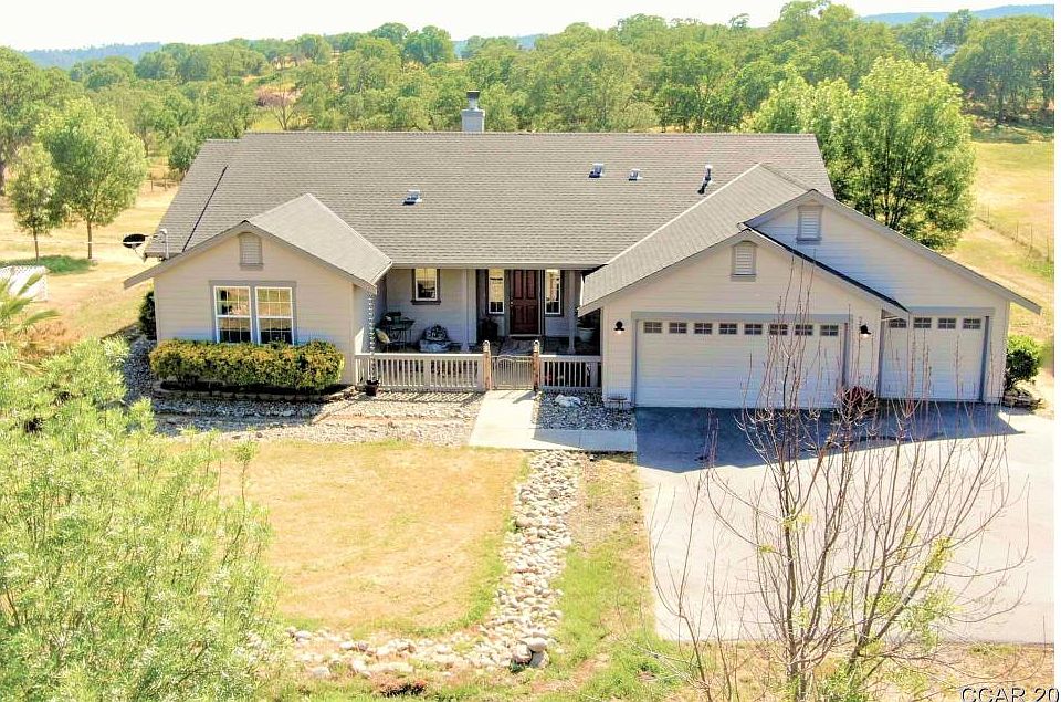 Your turn-key country dream-home awaits!Spacious & bright w/ open-floor-plan,vaulted ceilings,cozy fireplace,brand-new paint inside & out & a 3-car,extra-deep garage for boat,cars,& toys.Large kitchen w/upgraded textured-tile kitchen counters w/colonial bullnose + large island for entertaining.White upper cabinets & gray lowers!Low profile,under-cabinet lighting & GE profile appliances.Master suite w/slider to patio.New wood-look floors in master bath!You'll fall in love w/the serene location,backing up to open land by Saddle Creek.2.1 fully-fenced,usable acres w/seasonal creek & patio to enjoy views of oaks/rolling hills.There's a perfect spot to tie up a hammock & enjoy the breeze.Bring your animals!Copper Cove HOA gives Lake Tulloch access at the Kiva launch & docks for only $20/month.