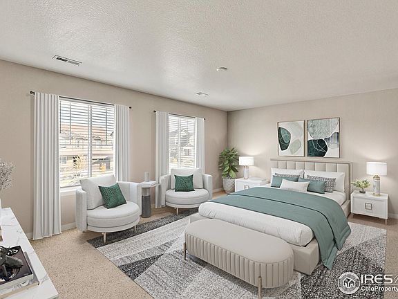 Contemporary, brand new, 3 bedroom 2-story home with loft, Study/Flex space and 3-car garage. Located in beautiful Lakeside Canyon. Open design, 9' ceilings, front porch and miles of trails/walkways and 2 doggie parks! This spectacular home includes A/C, smart home technology, tankless hot water heater, and cement fiber board exterior. LVP throughout the main living area, granite countertops in the Kitchen, quartz countertops in the bathrooms, beautiful white cabinetry, and stainless steel appliances. Fridge and Blinds are included! Live playfully in this fantastic location with minutes to Longmont, Firestone, Frederick and easy access to I-25.***Photos are representative and not of actual home***