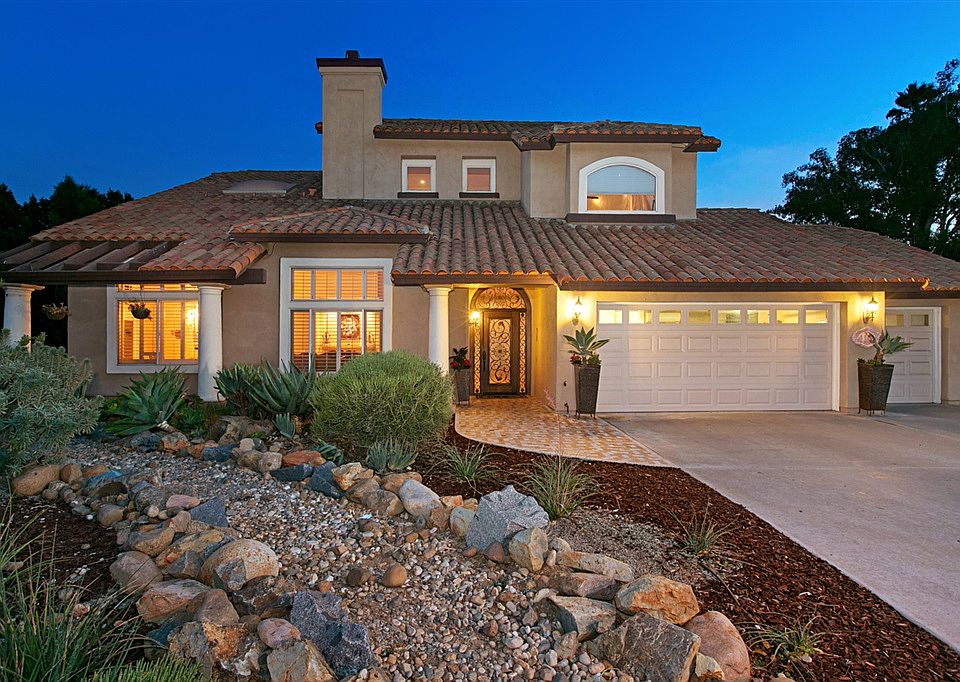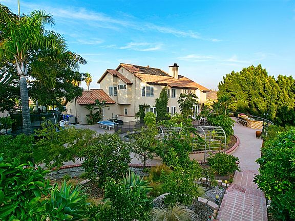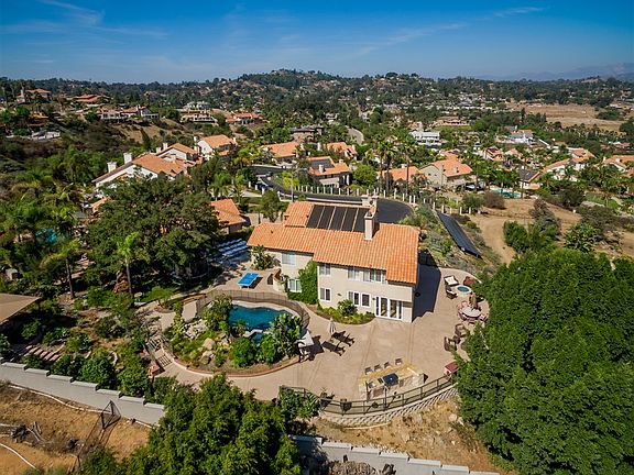 Open House Sunday 1-4 PM. Mt. Helix Estate. Exclusive Mt. Helix family home perched high on the hill at the end of a private cul-de-sac, sensational 180 degree view. 5 bedrooms, and 3 baths. Updated kitchen is joined by the breakfast nook and huge family room. The entry has a large custom door, travertine floors, beautiful wrought iron staircase and Great Room. The entry level has a bedroom/office plus a full bath. Upstairs Master Suite, three bedrooms, and Jack and Jill bath. The backyard is a Entertainer's paradise. 40 Solar panels paid. Updated kitchen with new high-end granite counters, tile backsplash, distressed wood cabinets, gas Wolf cooktop, new convection oven and microwave, Sub Zero refrigerator, walk-in pantry, chef's island, wine and beverage refrigerator, Travertine floors, and Granite chef's island. Extension of kitchen is the breakfast nook and family room and opens to the private entertainer's paradise. Master Retreat has a gas fireplace, hardwood floors, recessed lighting, high vaulted ceilings, his & hers walk-in closets, crown molding and plantation shutters. Master bath w/spa soaking tub, separate newly tiled custom glass walk-in shower, private water closet, Granite flooring and a huge skylight to bring in the natural light. Great Room style, living room and formal dining room enjoys massive fireplace, vaulted ceilings, African sapelle hardwood floors and Plantation shutters. The backyard has sensational views of surrounding mountains and valleys from the gas fire pit. Also, a custom wrought iron Gazebo, new concrete view deck with retaining wall, custom glass fence, custom outdoor BBQ kitchen with stainless steel sink, gas burner, and Granite counter. Pool upgrades include new coping, new tile, Baja landing, LED color lighting for pool, new high efficiency pool pump, new pool heater, gas and solar heat for pool and spa. Other amenities include: Lots of fruit trees, surround sound inside and patio area, front yard drip irrigation, security system. Solar Heat!