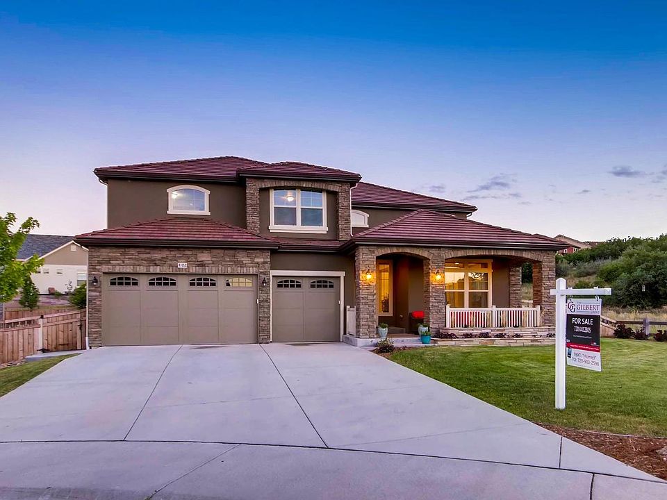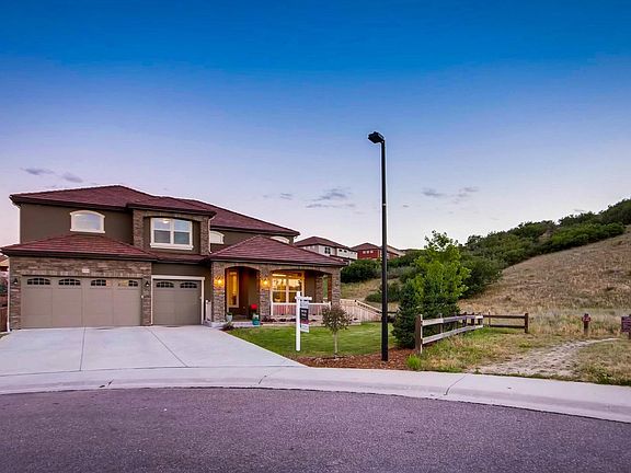 Stunning Castle Rock home situated on a prime lot adjacent to open space and trails. The charming front porch entry leads into an open and spacious floor plan with luxurious finishes throughout. This Chef's kitchen is ideal for entertaining with double ovens, stainless steel appliances, a walk-in pantry, and a large center island opening to the family room. The professionally landscaped yard is an idyllic space for entertaining alongside your outdoor fireplace, custom pizza oven, and extravagantly designed flagstone seating area. Wonderful, growing community close to shopping, restaurants, a park, a golf course and the elementary school.