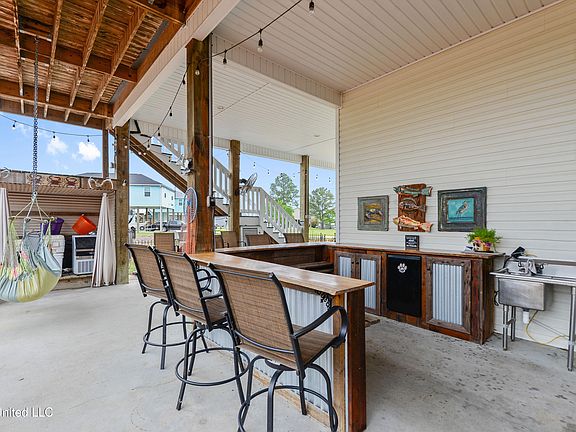 Better than new! This beautiful home is located on a deep canal just minutes from Bayou Lacroix and the Jourdan River. There are 3 large bedrooms and 2 full baths plus a spacious den and very nice kitchen. The lift is great for hauling your groceries! You will have lots of room for all of your toys because this beauty is located on 2 lots! There is a built in bar and 1/2 bath downstairs. This home is being sold almost totally furnished.