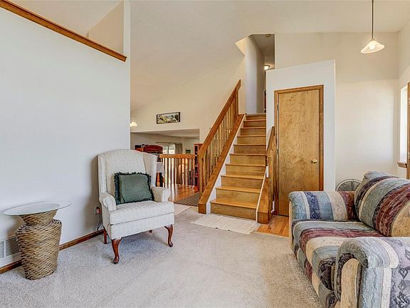 This meticulously maintained Spring Creek Meadows multi-level home is move-in ready! Enjoy views of Spring Creek Park that is just steps away! The main floor features vaulted ceilings throughout, hardwood floors in the kitchen and dining room and lots of natural light. The lower level family room has hardwood floors, a gas fireplace, and walks out to the back patio with a pergola. On the upper level you will find the master suite with a 5 piece bath and vaulted ceiling, 2 additional bedrooms, a full bath, and the laundry room. The basement is finished and makes a great recreation room, plus there is plenty of storage. Central air conditioning. Newer roof and exterior paint. The fenced yard includes a sprinkler system. 2 car attached garage.