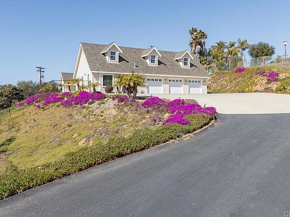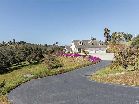 Don't miss this gorgeous four bedroom Single Level View Home (w/3 car garage & expansive upstairs bonus rm.) perfectly nestled on 2.65 acres among the scenic hills of Bonsall. As you enter this custom & newer built (2004) home you will immediately appreciate the quality of finishes, open floor plan, vaulted ceilings and custom windows that bring in the perfect amount of natural light. The kitchen features granite counters, custom cabinetry, stainless steel appliances w/professional grade six burner gas range; the kitchen opens up to a spacious living area with soaring ceilings & cozy fireplace. The well thought out floor plan incorporates three nice sized bedrooms on the north side of the home, one of which has double doors making it a perfect option for an office. The private primary suite on the southwest/opposite side of the home boasts vaulted ceilings, double vanity, jetted jacuzzi tub & walk-in closet. You will absolutely love the expansive upstairs Bonus Room, perfect for a home theatre or game room. The 3 car garage is in pristine condition with epoxy flooring and built-in storage. This home is perfectly perched on 2.65 acres with peaceful views of the countryside & plenty of room for an infinity pool...There is also a large fully fenced area of the acreage with a lawn perfect for children & pets to play. FEATURES/UPGRADES INCLUDE: *Single level w/expansive upstairs bonus rm (perfect for theatre or game rm) *No HOA/Mello-Roos *3 Car garage w/epoxy flooring & built-in storage *2.65 acre view lot w/running stream *Dual pane windows with custom casings *High quality shutters and window coverings throughout *Beautiful wood plank flooring *Home is on natural gas/not propane *All roads & driveway leading to the home are in excellent condition *5 Min. Drive to the 76 *Desired Bonsall school district.