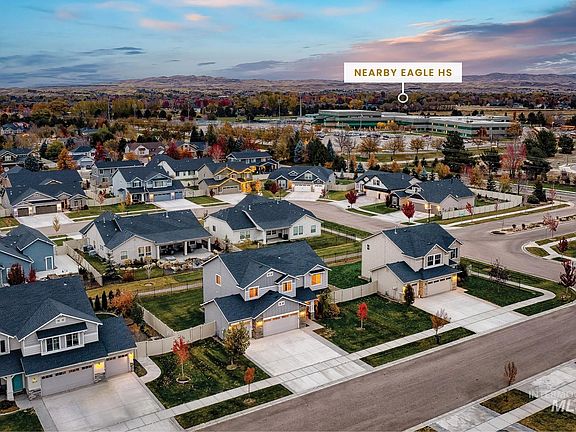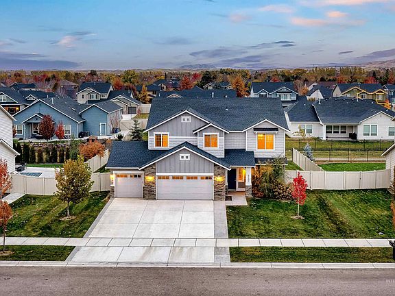 Incredible property ideally located in Spring House Sub! Flexible floor plan featuring nearly ~2400sqft, 5 bedrooms + bonus/flex, 2.5 baths and a rare 4 car garage for all the toys! Main level boasts an open concept great room, sprawling LVP flooring, entertainers kitchen with central island, wood cabinets with soft close drawers, granite counters, walk-in pantry, stainless appliances as well as a main level bedroom/office. Upper level includes a secondary living/bonus space, primary suite with vaulted ceilings and a private en-suite with dual vanity, soaker tub and oversized walk-in closet. Fully fenced back yard with covered patio and walking paths to the community park and common area. Low cost irrigation for yard! All located within minutes to Eagle Island State Park, Downtown Eagle, shops/restaurants and coveted area schools.