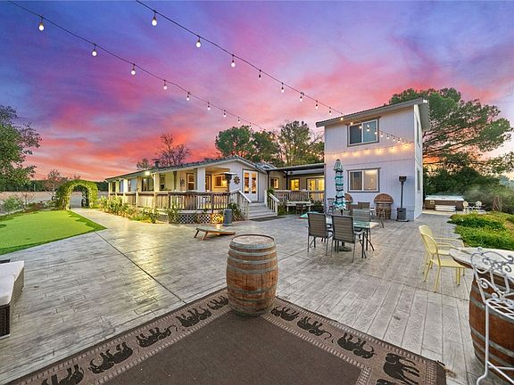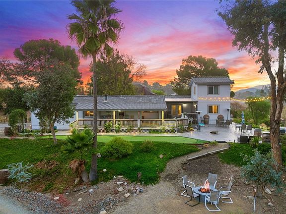 MAKE YOUR WINE COUNTRY DREAMS COME TRUE! Imagine coffee with hot air balloons at sunrise, golden hour on the deck at sunset, and a chef's kitchen + great room for everything in between. This is a must see home, don't pass this one by!! By far is not your typical manufactured home...PLUS THERE'S A PERMITTED STICK-BUILT ADDITION with ROOM to EXPAND on the SECOND STORY!! Perched atop a scenic hill in Temecula Wine Country offering breathtaking panoramic views and ample space for everyone with 6 bedrooms and 4 bathrooms, including two with en-suite bathrooms!! Perfect for hosting or accommodating your outdoor lifestyle, the property boasts RV, boat, and toy parking with convenient hookups (water, black tank pump-out, and 30 & 50 AMP connections). A sprawling wraparound deck and a stamped concrete patio create the ultimate setting to soak in vibrant SoCal sunsets or marvel at early-morning hot air balloons drifting by. Enjoy an outdoor paradise with a custom wine barrel bar, BBQ station, and cozy firepit. Let the good times roll with a horseshoe pit, a bubbly jacuzzi overlooking vineyard-draped hills, and a 3-hole putting green for endless entertainment. Step inside to find an open and inviting great room with built-in window seats—perfect for a quiet reading nook or sipping morning coffee. A large built-in desk with ample storage makes the space as functional as it is charming. The oversized kitchen is a chef’s dream, featuring granite countertops, an island, stainless steel appliances, a built-in wine rack, abundant cabinet space, and double doors leading to the deck—perfect for seamless indoor-outdoor dining. The luxurious primary suite is a peaceful retreat, bathed in natural light with a spacious walk-in closet and built-in dresser. The en suite bathroom includes a beautifully oversized walk-in shower, ideal for unwinding after a day of wine tasting or exploring. For your convenience, the property also features an electric car charging station, two metal sheds, and two 40-foot shipping containers for plenty of storage. Currently operating as an AirBnb. Schedule your private tour today!