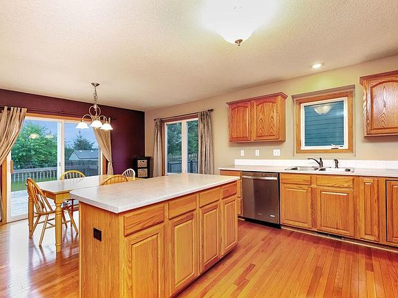 This 2 story home is ready to move-in! This home features a living room with fireplace, large eat-in kitchen and 1/2 bath on the main floor. The master bedroom with raised ceiling, master closet with shelving and natural light, and master bathroom with double vanities and laundry are all on the 2nd floor. Need more? Then you have to see the HUGE 3rd bedroom! It has 2 closets and is perfect for kids to share or for a 2nd floor family room or office. LL is brand new, seldom used, and is wired for surround sound. The back yard has a large deck with fire pit and a chain-link fence. Extended 2 car garage has tons of storage shelves. All appliances stay!