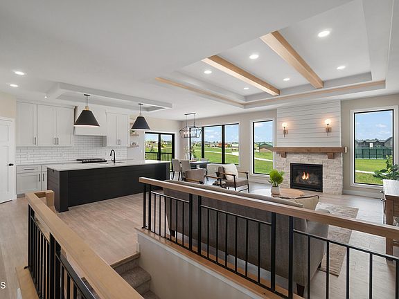The main floor features an open-concept design with huge windows framing the living room fireplace and one of the largest and most impressive windows you're likely to see in the dining room! This large kitchen features a gas range, a 10 ft. island, a walk-in pantry, custom range hood and floor to ceiling cabinets! The living room has a gas fireplace with a modern shiplap mantle. On your way to the extremely large garage (1150 sqft itself!) you will find a mudroom with custom locker section. Adjacent to that is the large laundry room with beautiful cabinetry, lots of countertop space and sink.